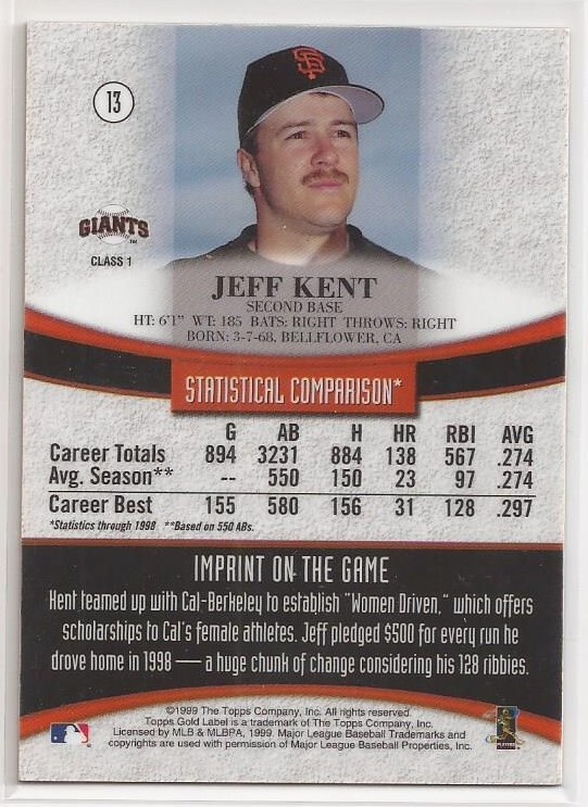 1999 Topps Gold Label Class 1 Jeff Kent #13